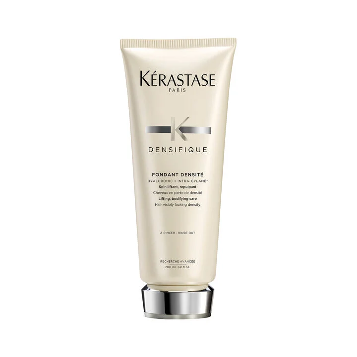 O Fondant Densité é o condicionador Kérastase para quem sofre com afinamento capilar. O Condicionador Densifique foi desenvolvido para tratar os cabelos finos e ralos a partir do interior da fibra capilar. Este condicionador para cabelos finos e ralos é usado para fortalecer o cabelo e contém Ácido Hialurónico que oferece hidratação e resiliência para dar volume ao fio, enquanto os Minerais Intra-Cylane® proporcionam força e estrutura ao cabelo a partir do interior da fribra através de uma estrutura tridimensional, fazendo com que o cabelo fino pareça mais espesso. Este condicionador para cabelos finos é leve e sedoso, repõe a textura, a consistência e a resiliência do cabelo para um efeito encorpado imediato. Os cabelos finos e enfraquecidos são uma preocupação do passado com a ajuda de Fondant Densité, o nosso condicionador para cabelos enfraquecidos.